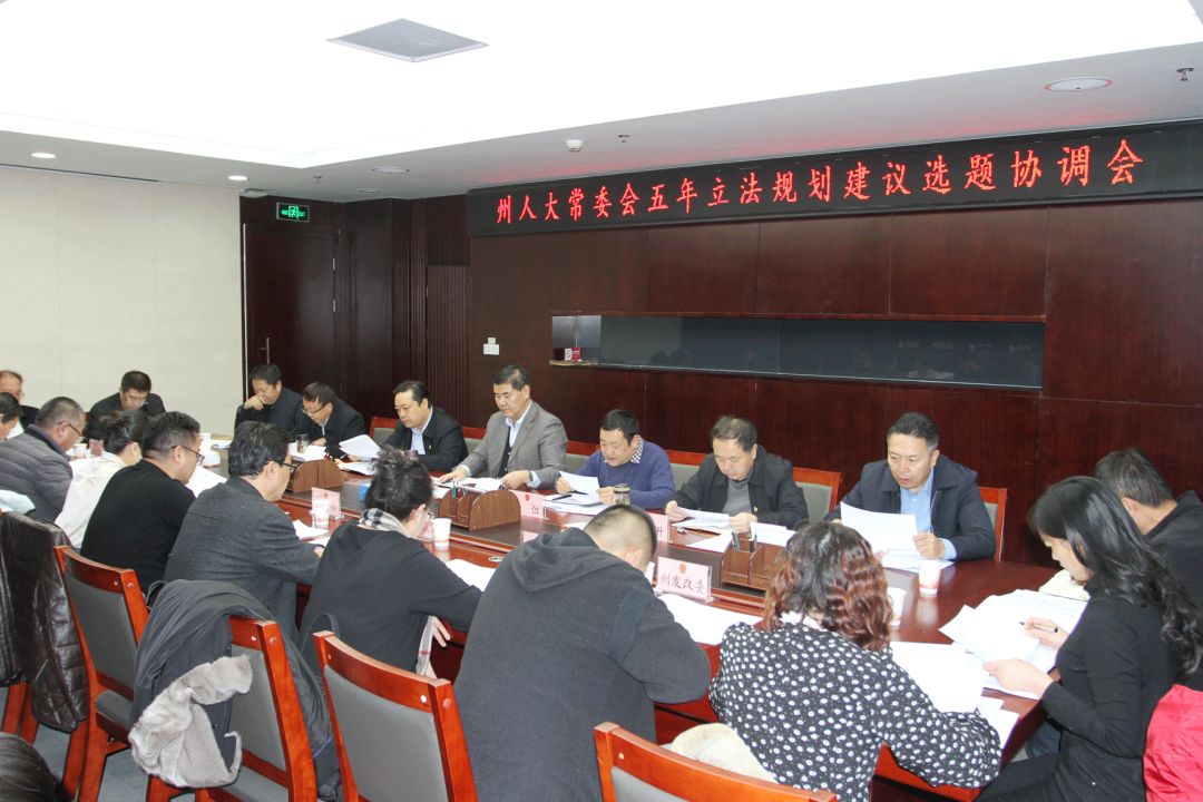 1月14日,州人大常委会召开五年立法规划建议选题协调会。州人大常委会副主任赵永寿主持会议并讲话。州“一府一委两院”有关负责人以及州人大各专门委员会、常委会各工作委员会、州政府相关部门负责同志参加了会议。
