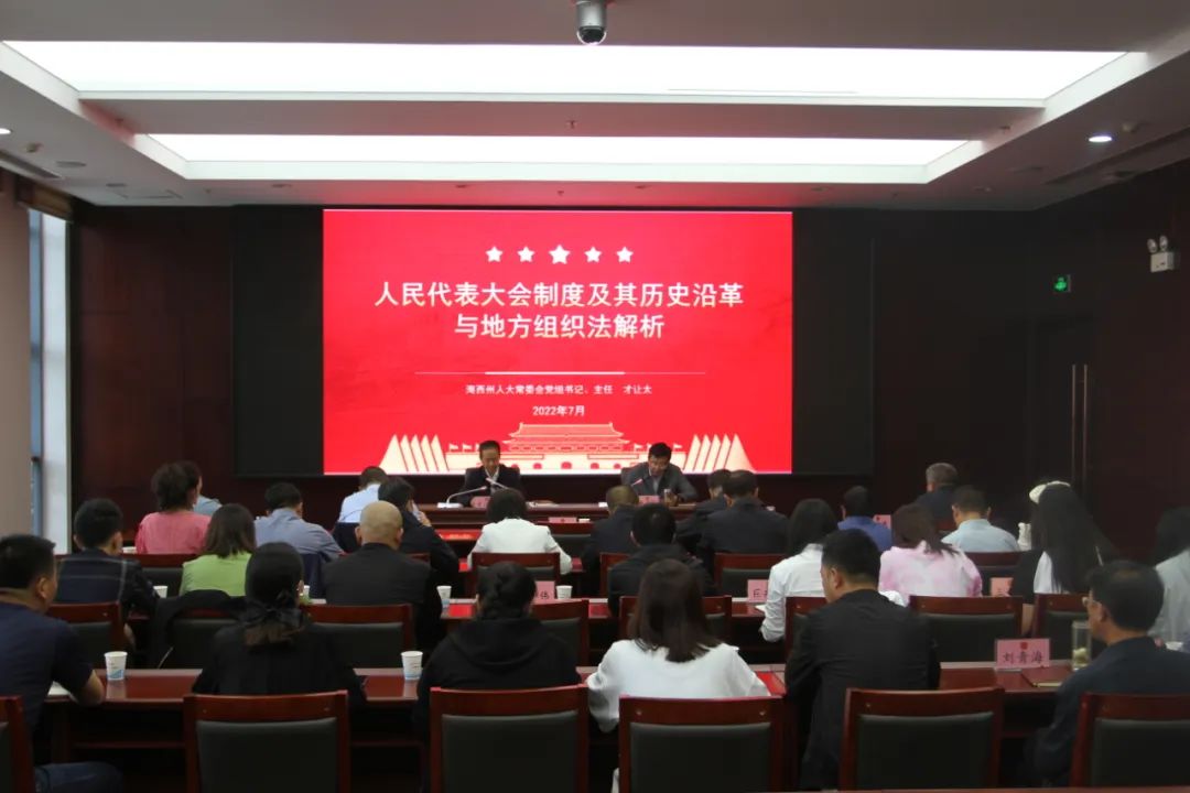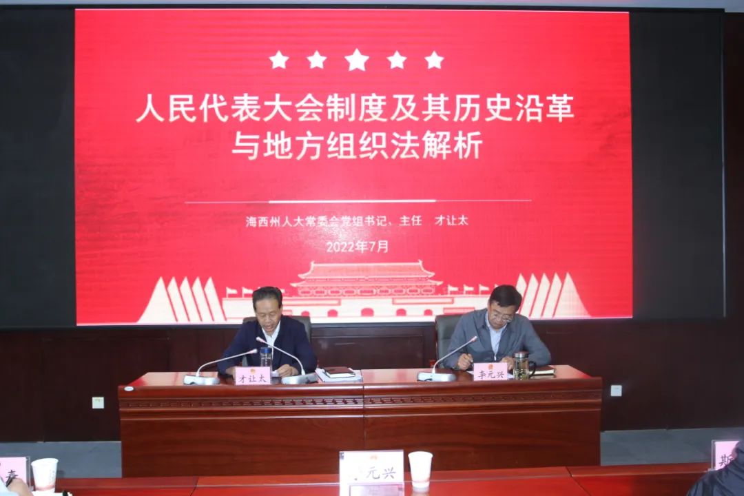 才让太从以苏维埃代表大会制度为代表的工农民主政权、以“三三制”参议会制度为代表的抗日民主政权、以人民代表会议制度为代表的人民民主政权和人民代表大会制度的确立、实施、完善、发展等四个方面详细阐述了党带领人民经过长期奋斗和探索实践建立人民代表大会制度的历程。在解读最新修改的《中华人民共和国地方各级人民代表大会和地方各级人民政府组织法》时,结合个人学思感悟,从《地方组织法》的修改历程、修改的必要性、修改的重要意义并结合人大工作针对此次修改的49处重点内容进行了系统解读和辅导。指出,新修订的《地方组织法》全面贯彻习近平法治思想、习近平总书记关于坚持和完善人民代表大会制度的重要思想和中央人大工作会议精神,对于加强地方政权建设、发展全过程人民民主、更好坚持和完善人民代表大会制度、推进国家治理体系和治理能力现代化具有十分重要的意义。