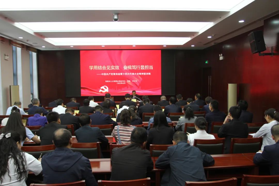为庆祝建党101周年,深入学习贯彻落实省第十四次党代会精神,6月30日,州人大常委会党组书记、主任才让太以“学用结合见实效 奋楫笃行显担当”为主题专题宣讲了省第十四次党代会精神。州人大常委会组成人员和机关全体干部职工参加了宣讲会。